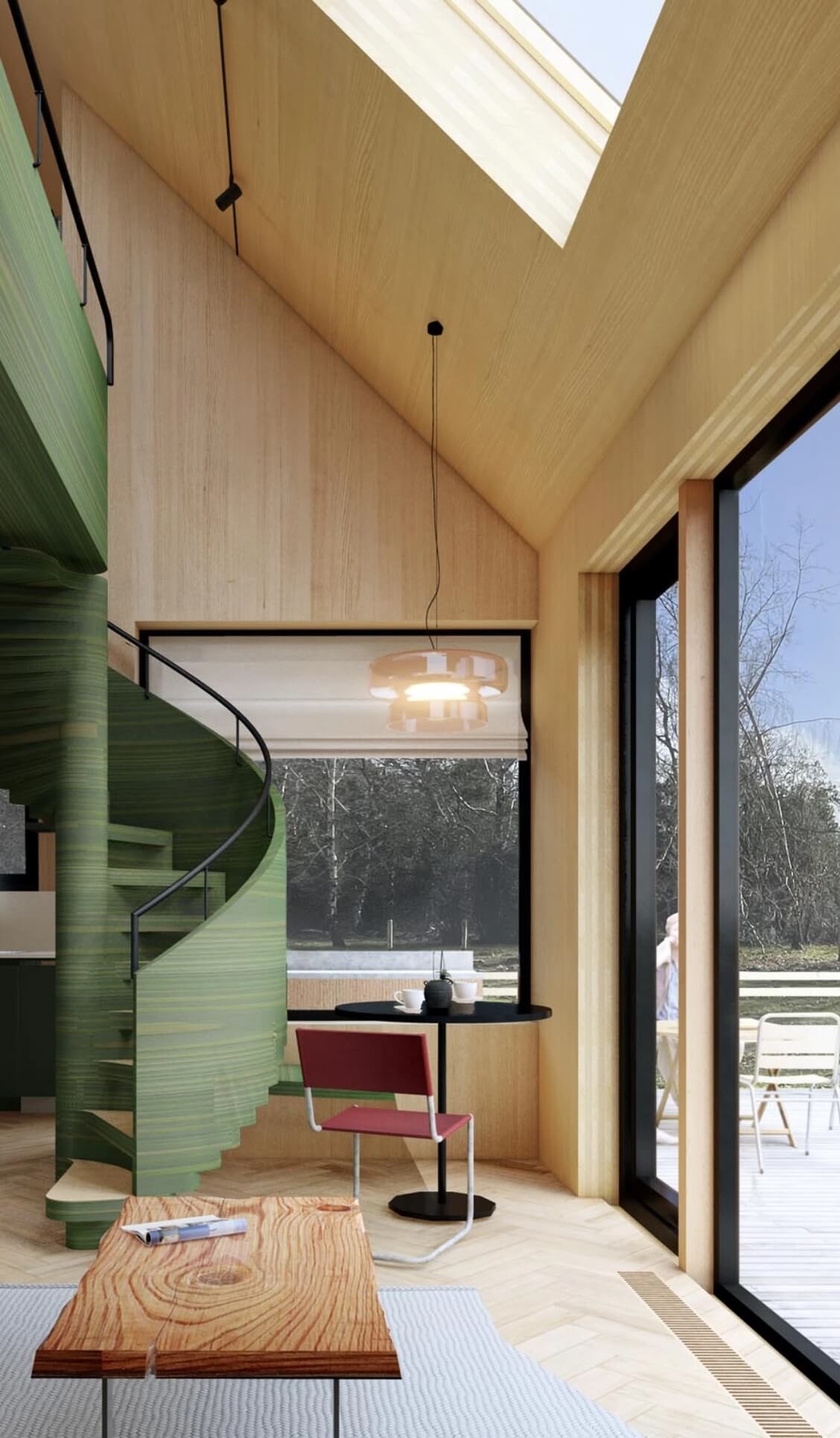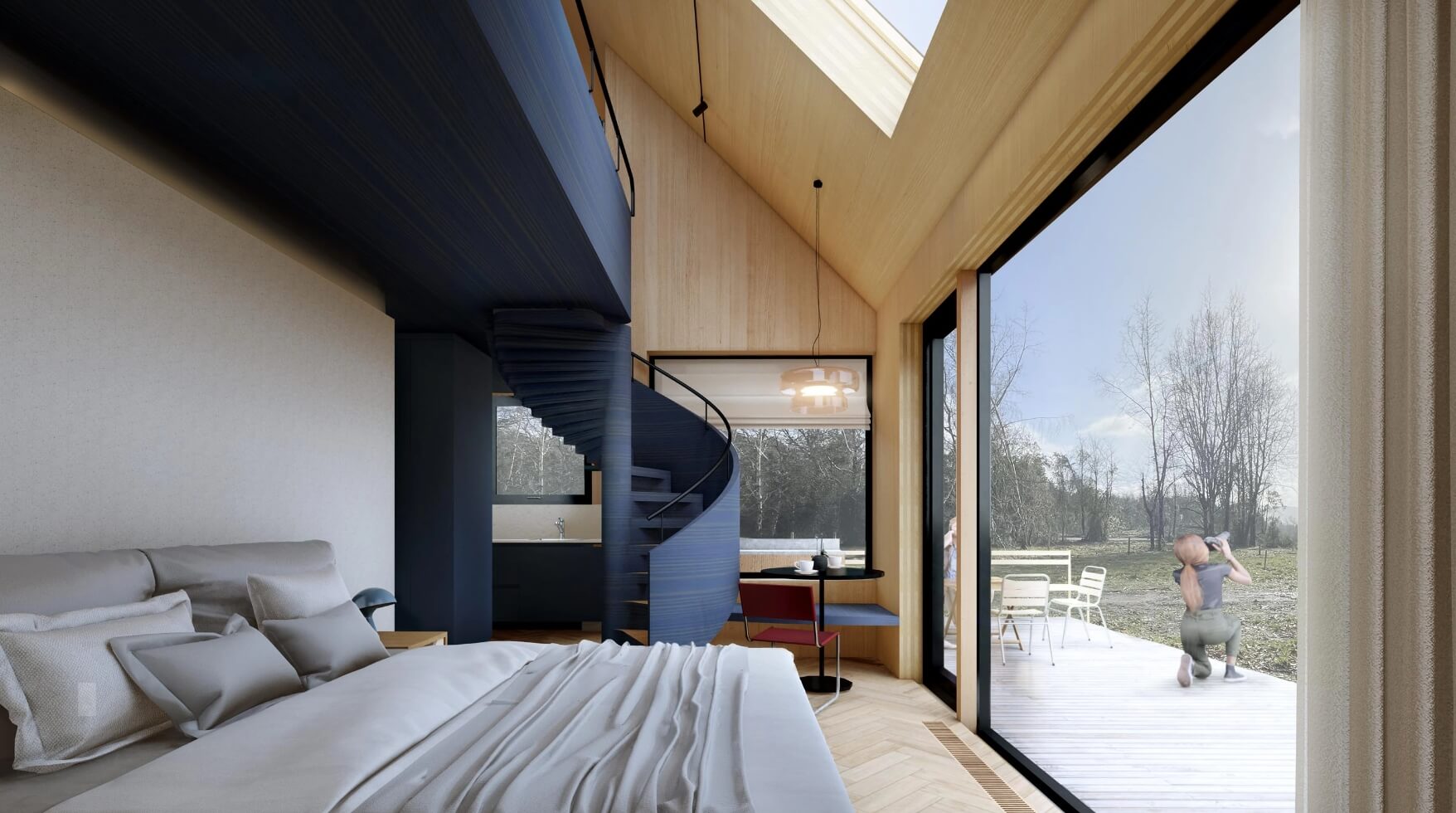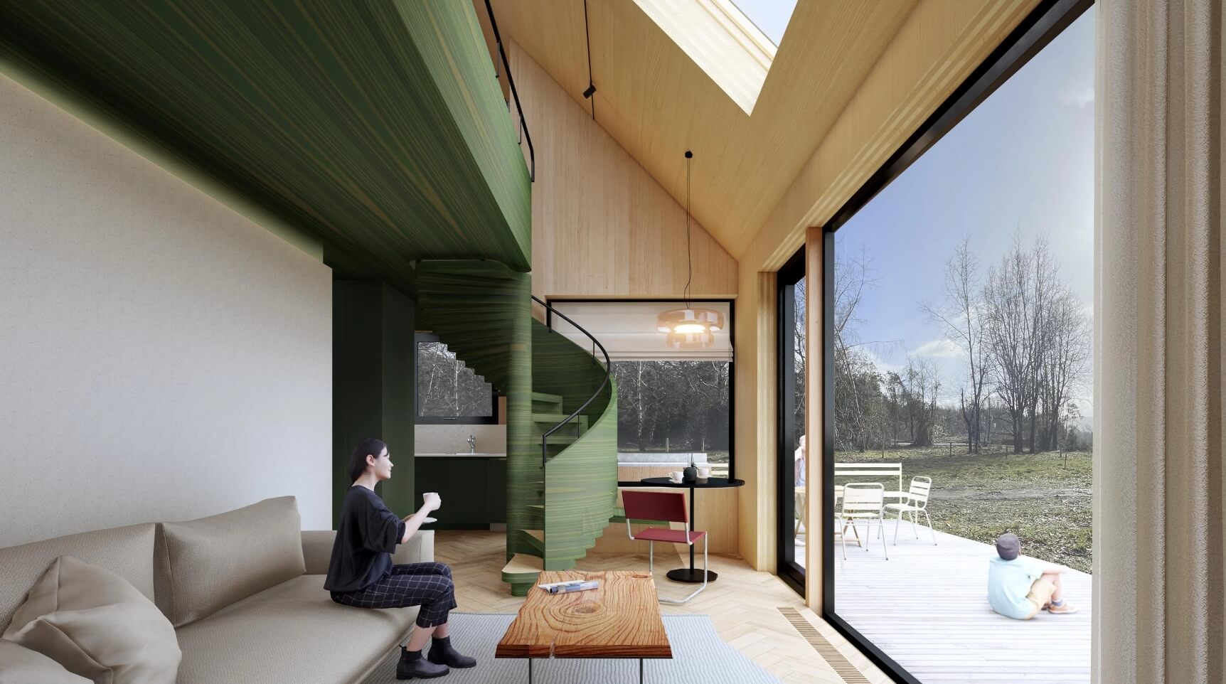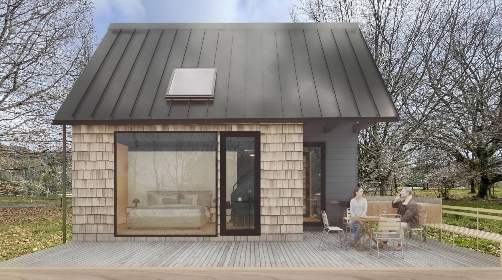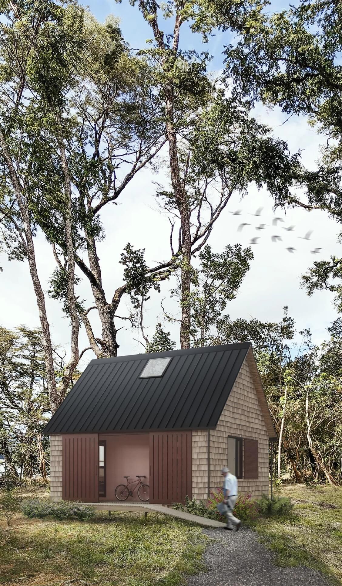El Galpón Suite es una vivienda prefabricada diseñada para enfrentar el clima sureño con eficiencia y sustentabilidad. Construida con paneles CLT y madera laminada HILAM, combina alto rendimiento térmico, materiales naturales y diseño