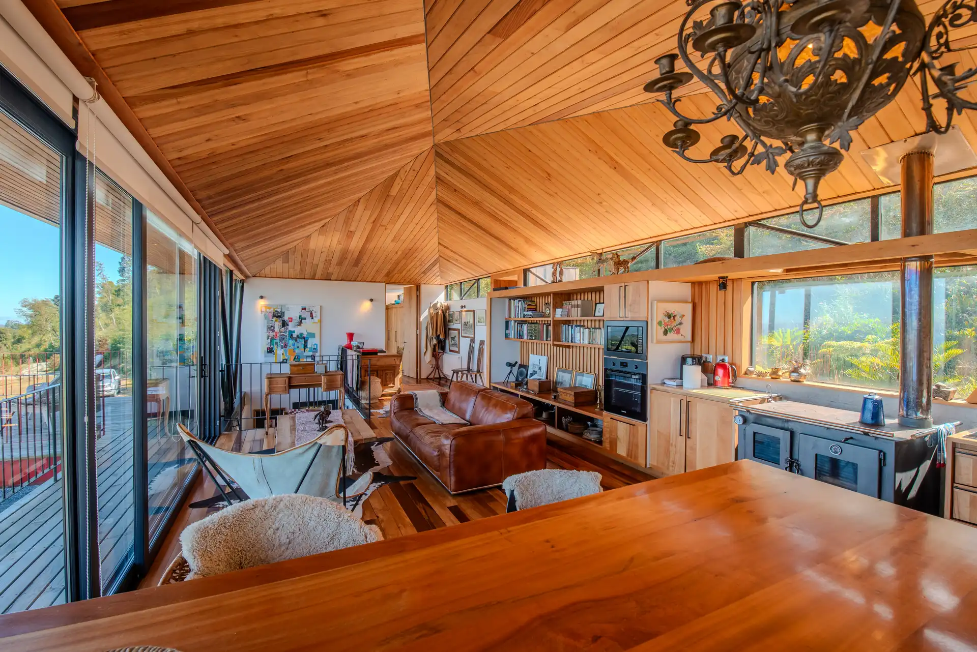 Cuenta con una habitación en suite en un extremo, un espacio central abierto de cocina y living conectados a la terraza, y dos habitaciones con baño completo al otro costado.