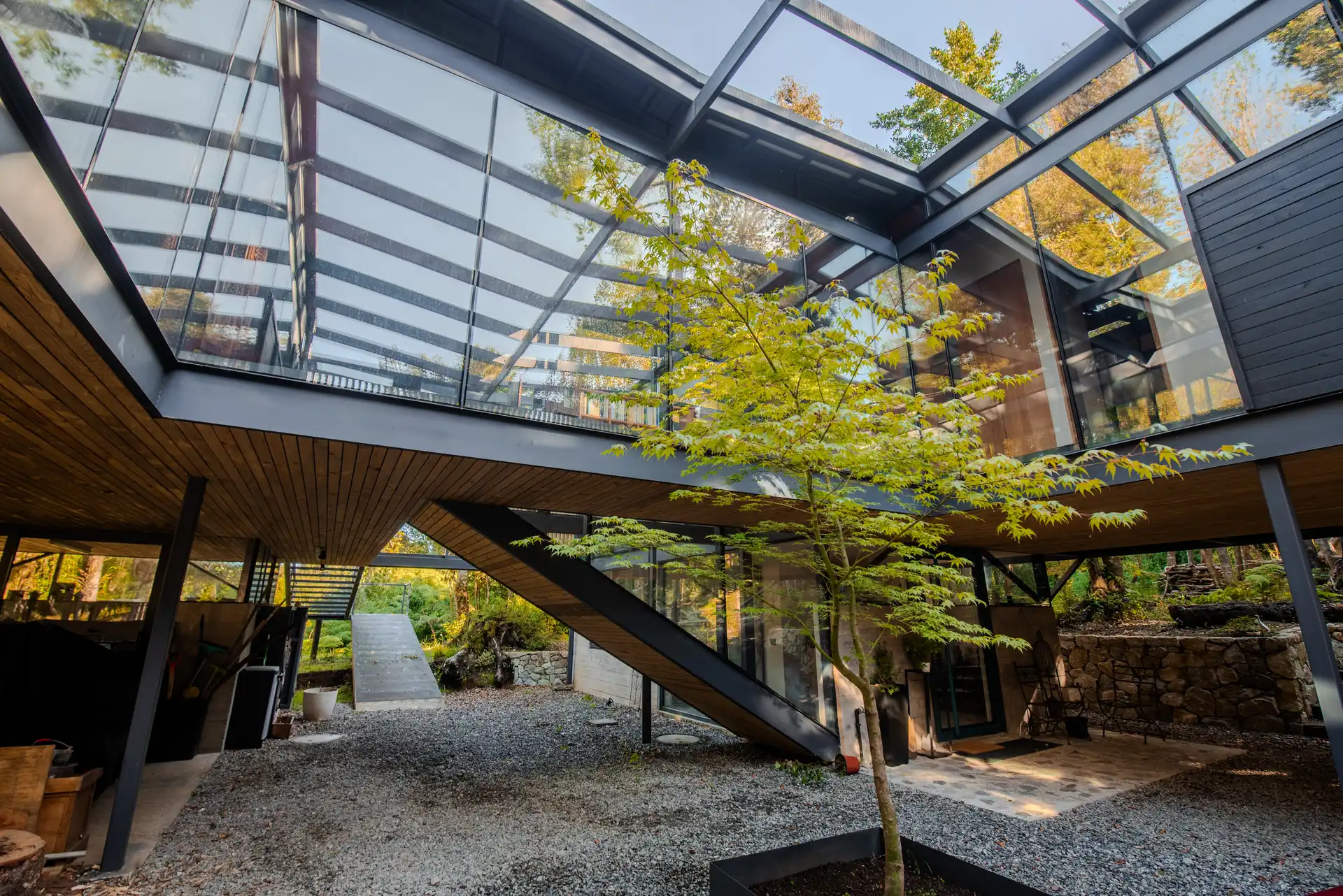 Bajo el nivel de acceso, la casa incorpora un zócalo técnico que funciona como sala de servicio para equipamiento general.
