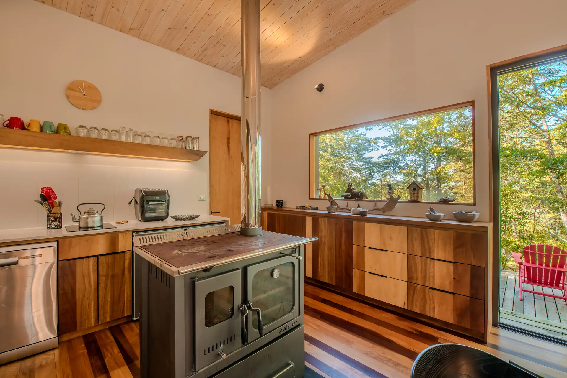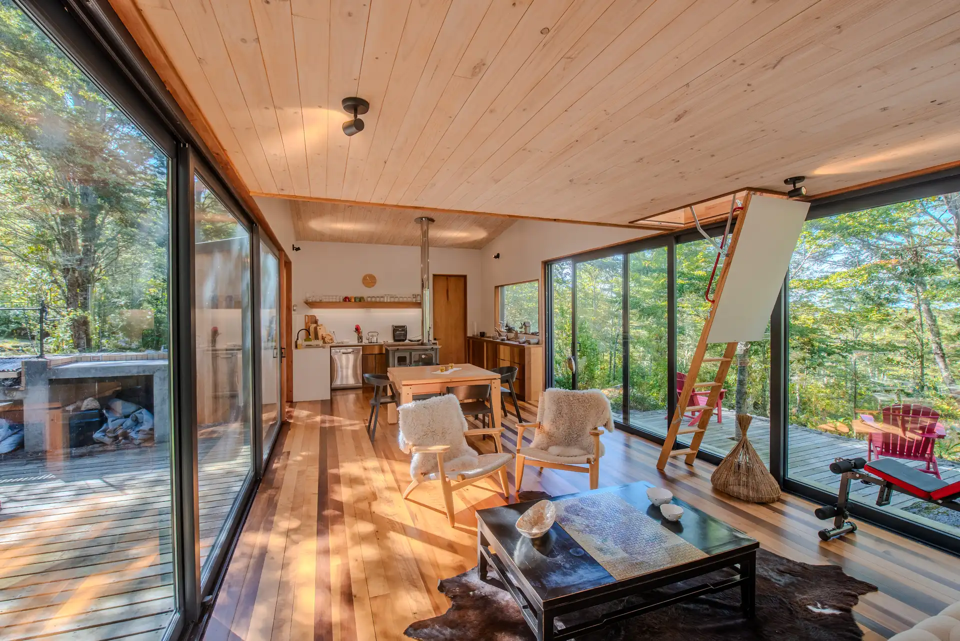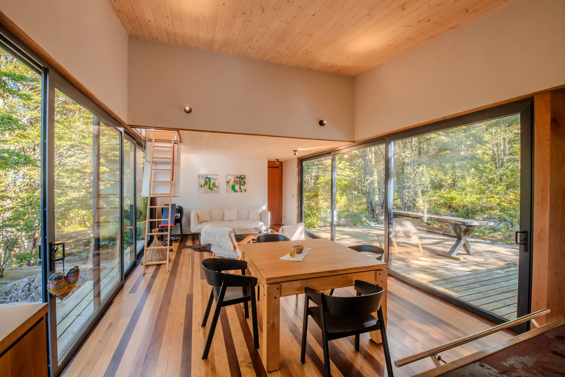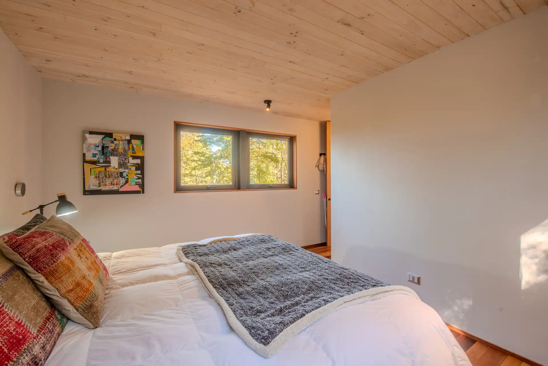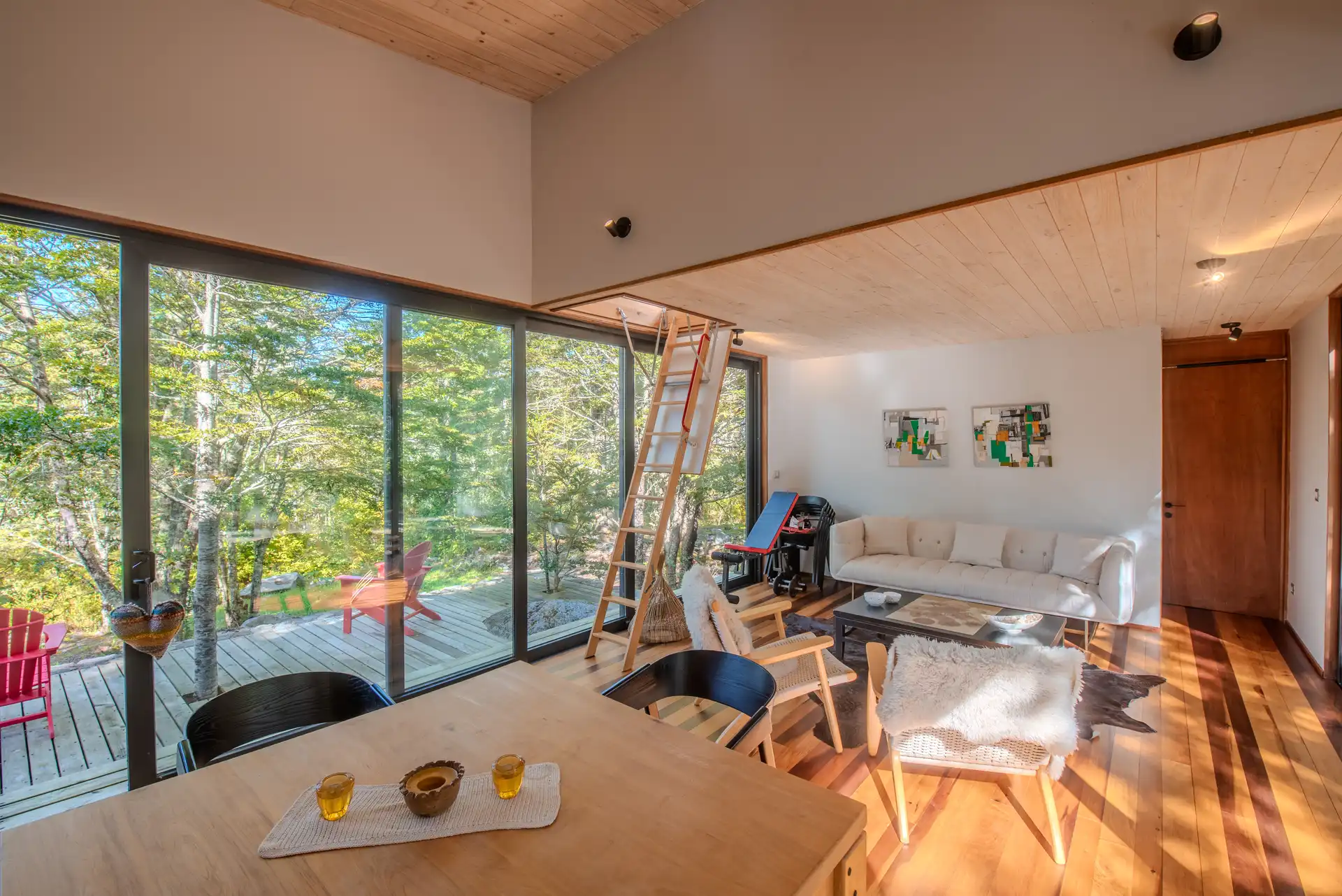 Cuenta con una habitación en suite en un extremo, un espacio central abierto de cocina y living que se conecta a la terraza por ambos costados, y un altillo sobre el living que funciona como habitación complementaria.