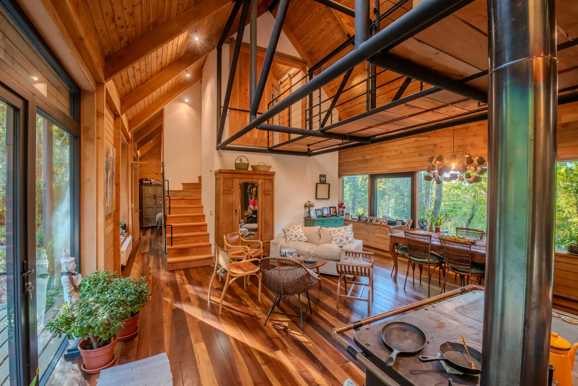 El primer piso incluye dos habitaciones, un baño y un espacio abierto de cocina y living.