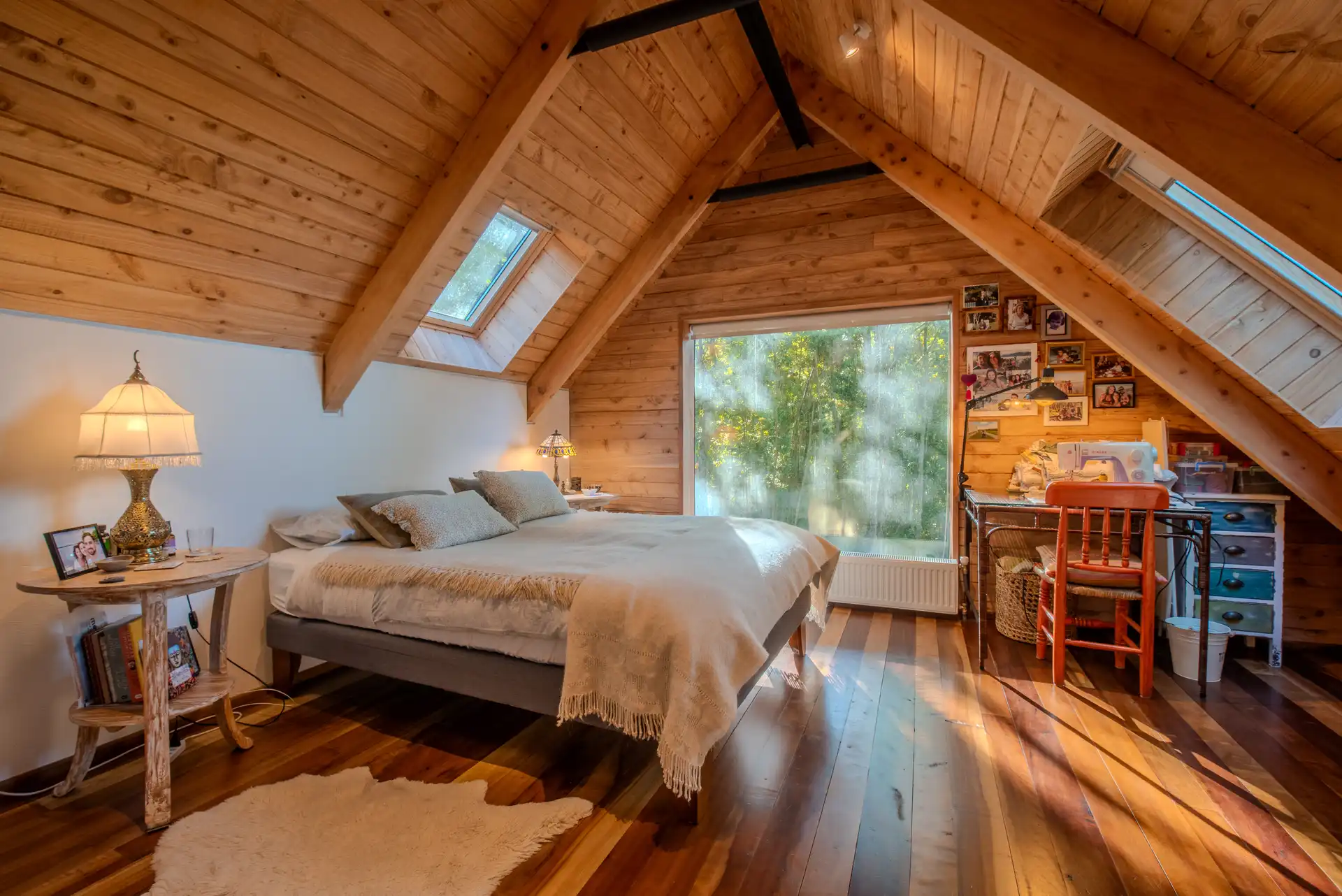 En el segundo piso se encuentra la habitación principal, baño completo y un área de entretenimiento abierta conectada con el resto de la casa.