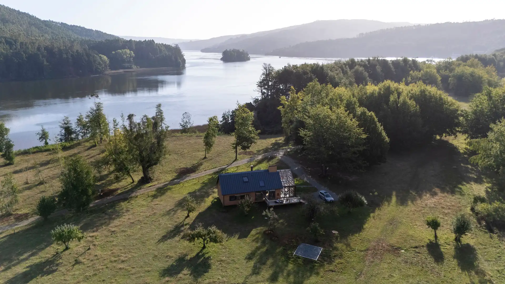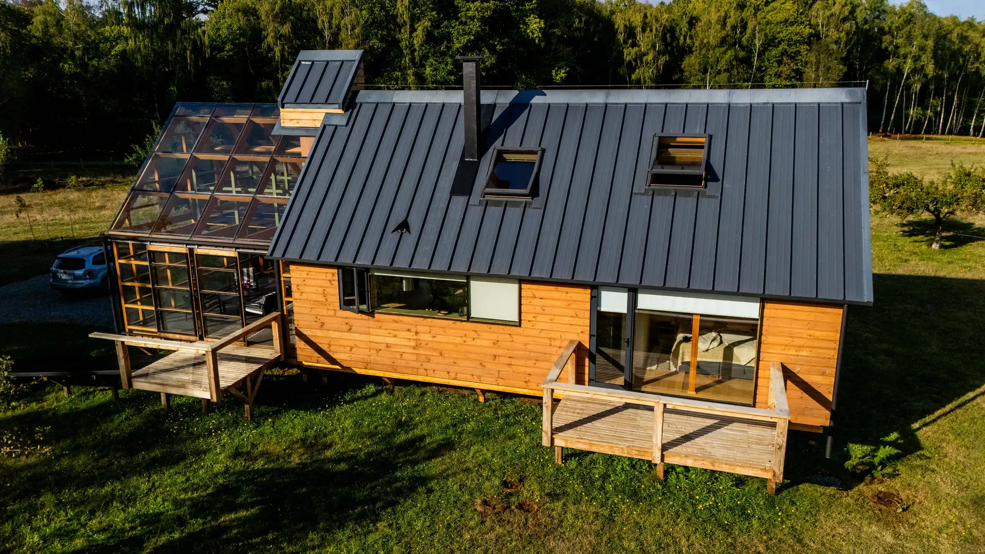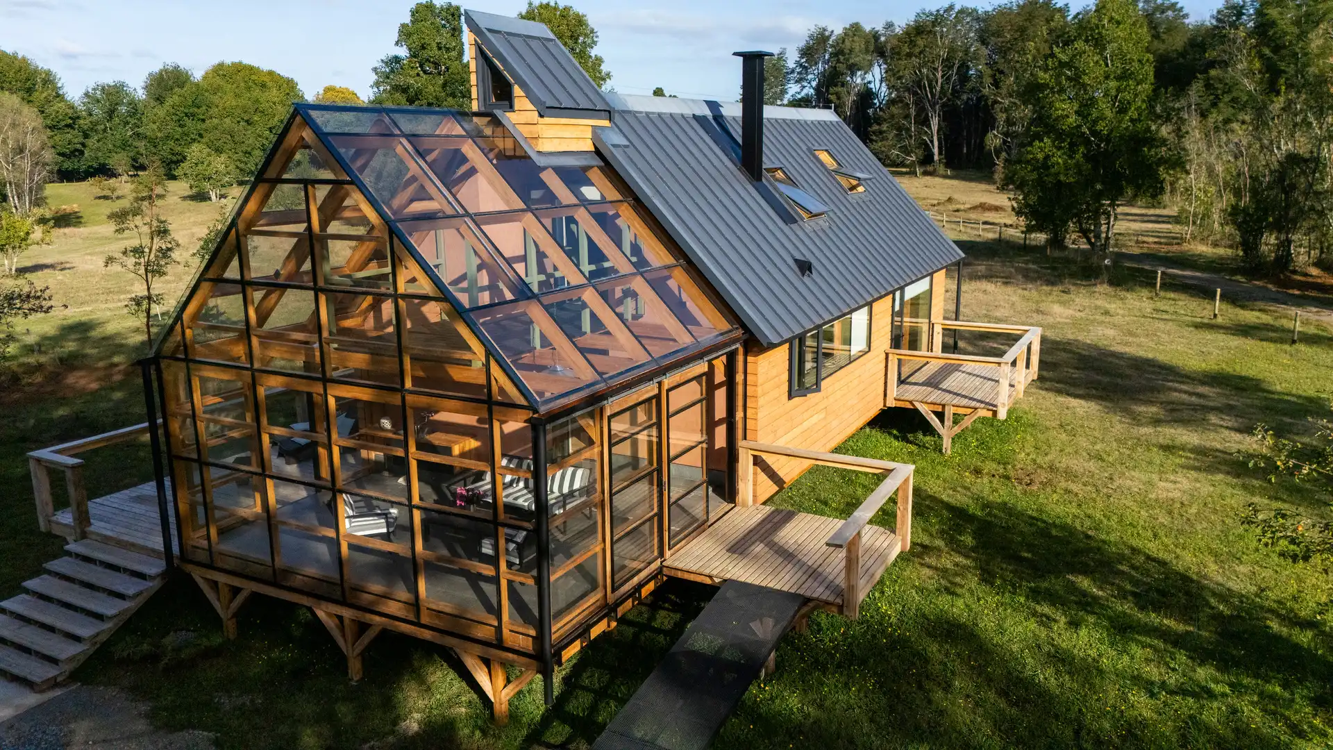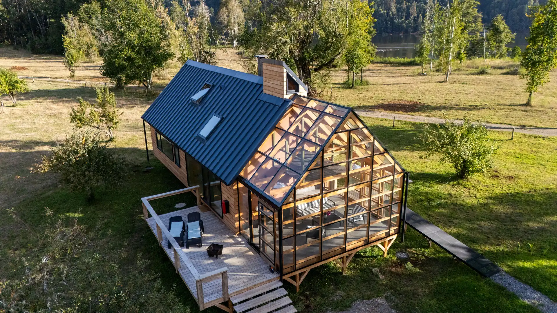 Vivienda de dos pisos construida en madera mecanizada CLT, que destaca por su diseño cálido, eficiente y de gran calidad estructural.